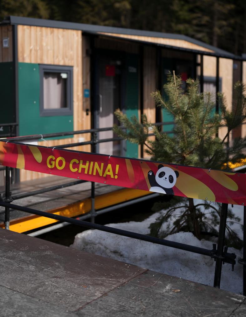 当日是冬残奥村在本届赛事的第一个媒体开放日,走进村里,率先映入眼帘的是一条从脚下延伸向远方的主路,主路两旁则紧凑地排列着各个代表团所住的小木屋,路边摆放着以盲文等标注的地图,已经有不少代表团成员或乘坐轮椅,或步行在村里出行。