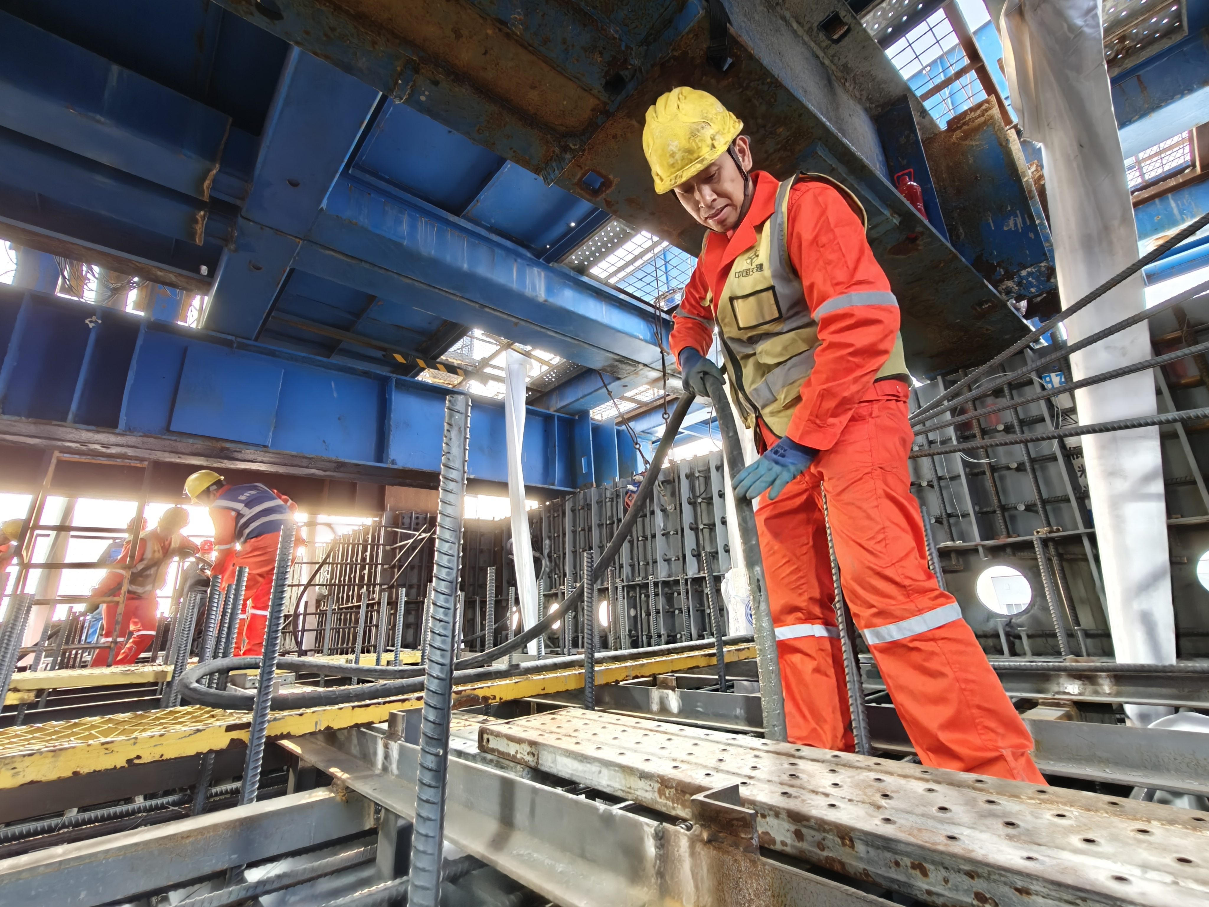 狮子洋大桥主塔高342米,相当于110层楼高,单幅塔肢由62个钢壳节段精准拼装。面对毫米级精度控制、超高施工等挑战,中交二航局项目团队创新攻克多重难题——