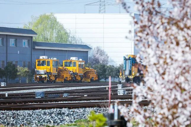 春风拂过钢轨,繁花映照着中国铁路西安局集团有限公司工务机械段的大型养路机械。这些“钢铁卫士”整装待发,在春日暖阳中守护线路安全,让每一趟列车都能驰骋在最美的春天。