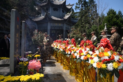 绍兴市越城区“壹班长”退役军人志愿服务队到绍兴市府山烈士陵园开展“情寄清明、缅怀先烈”祭扫活动。