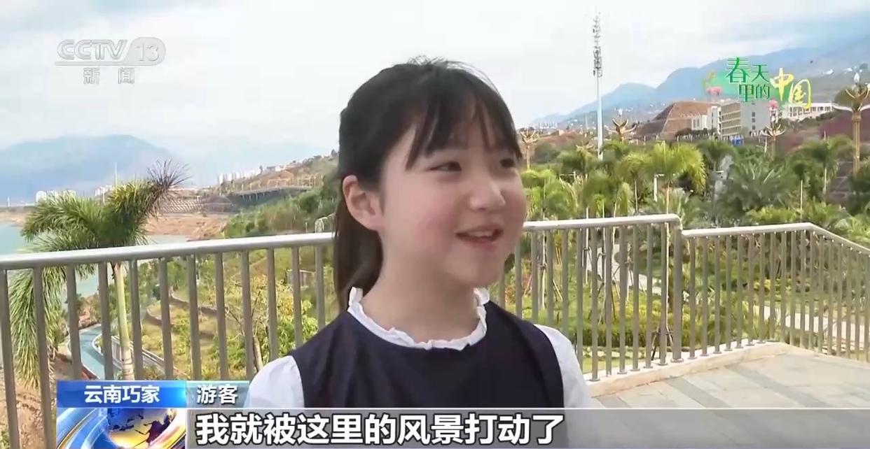 游客:我一来到这里就被这里的风景打动了,这里很舒服,风景很好,白鹤滩大坝的风景也很好。