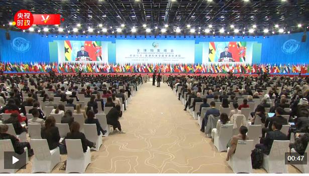 10月13日上午,国家主席习近平在北京国家会议中心出席全球妇女峰会开幕式并发表主旨讲话。