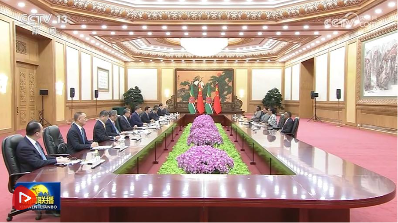 10月14日上午,国家主席习近平在北京人民大会堂会见来华出席全球妇女峰会的多米尼克总统伯顿。
