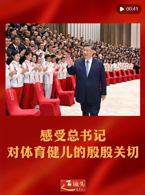 习近平总书记高度重视和关心体育事业,党的十八大以来多次寄语中国体育健儿。每次见到大家,总书记都会点赞运动员们的优异成绩和拼搏精神,勉励大家奋力拼搏、再创佳绩,为建设体育强国作出新贡献。
