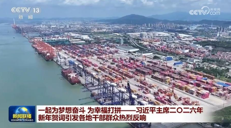 央视网消息(新闻联播):习近平主席发表的二〇二六年新年贺词,温暖人心、传递信心、催人奋进。广大干部群众表示,要更加紧密地团结在以习近平同志为核心的党中央周围,锚定目标任务,用拼搏进取、耕耘奉献,把宏伟愿景变成美好现实。