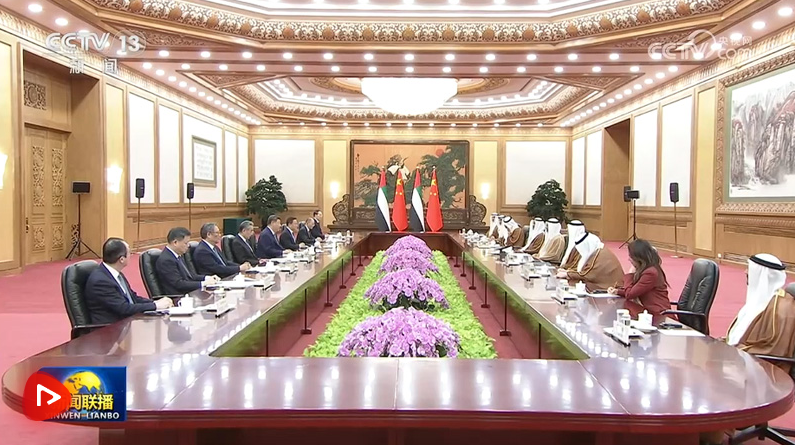 习近平指出,阿联酋是中国的全面战略伙伴,中方始终高度重视发展同阿联酋的关系。在双方共同努力下,中阿关系保持健康稳定发展,政治互信不断加深,务实合作稳步推进,人文交流丰富多彩。巩固和提升中阿关系是双方的坚定共识,符合两国人民期待。中方愿同阿方携手同行,打造更加稳固坚韧、富有活力的中阿全面战略伙伴关系。双方要继续在涉及彼此核心利益和重大关切问题上相互支持,保持高层交往,筑牢战略互信。加强发展战略对接,在能源、投资、贸易、科技等领域深挖潜力,深化互利合作。推动教育、民航、旅游等合作取得更大进展,密切人文交流,夯实民意基础。在联合国、金砖国家等多边平台增进协调合作,以中阿关系的稳定性应对国际和地区形势的不确定性,共同推动构建人类命运共同体。