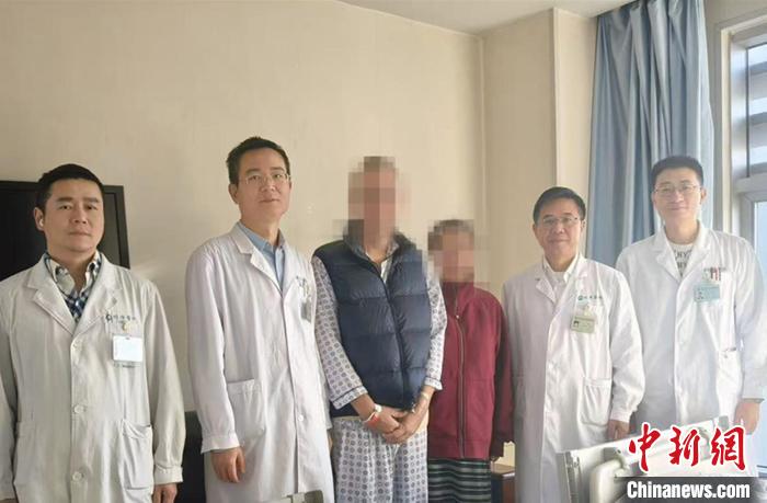 Vincent夫妇与医护人员合影。(华中科技大学同济医院供图)