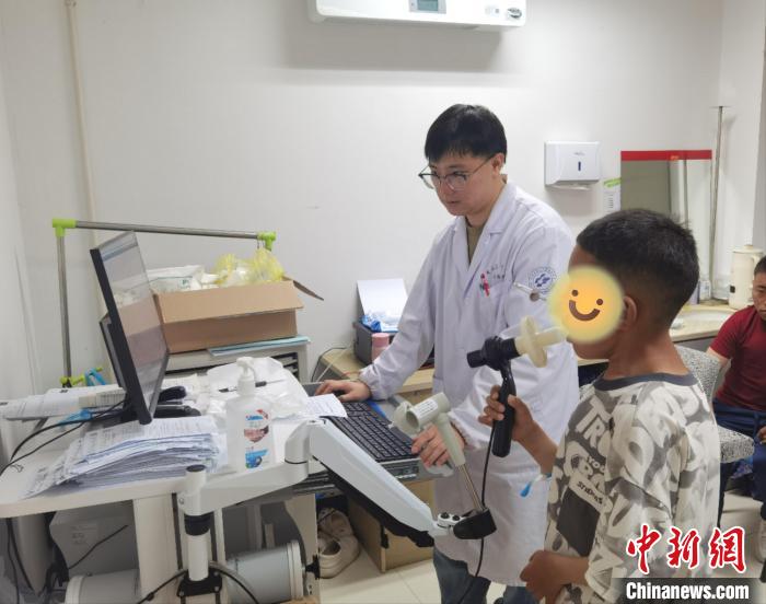 6月,多吉在手术前进行肺功能检查。萧山区中医院供图