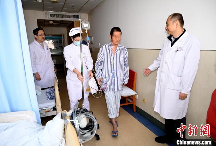 71岁肝癌病人术后第2天,精神矍铄,行动自如。 张舒姗摄