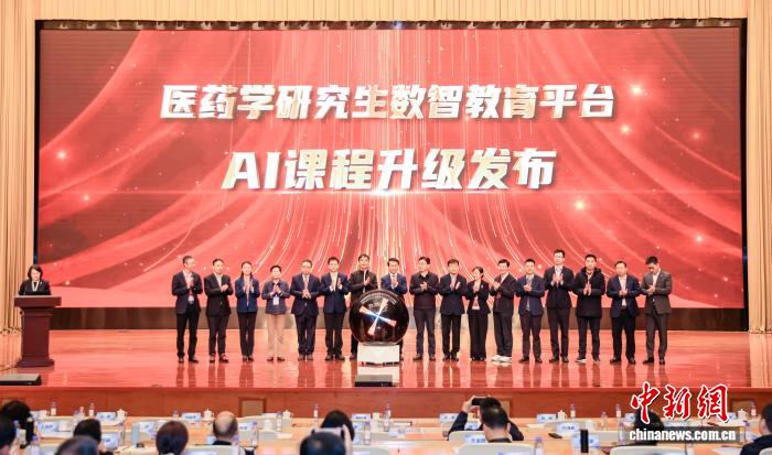 论坛现场,医药学研究生数智教育平台AI课程升级发布。主办方供图