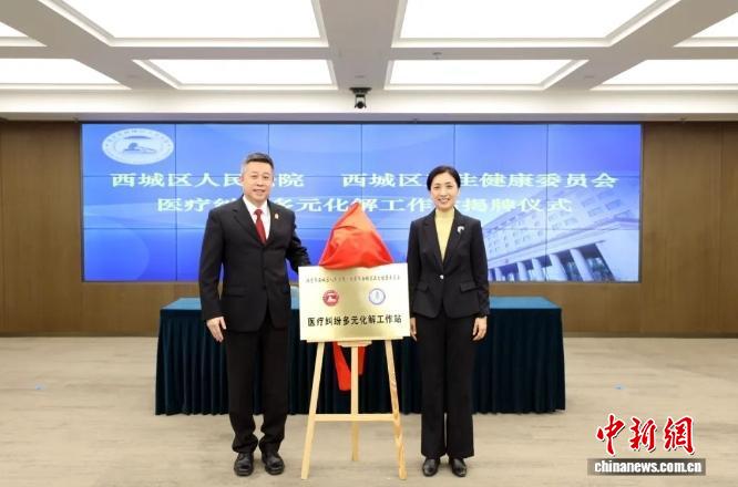 图为“医疗纠纷多元化解工作站”揭牌。北京市西城区法院供图
