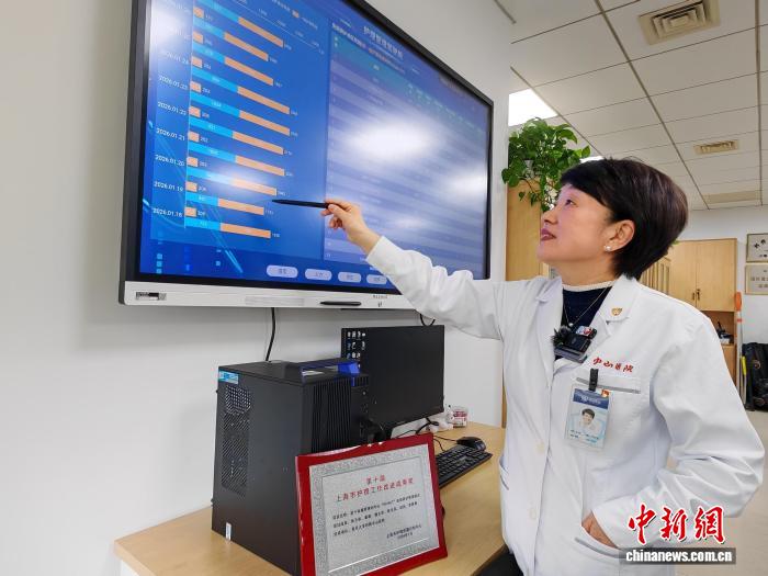 张玉侠为记者讲解“护理管理驾驶舱”显示的相关信息。中新网记者 陈静 摄