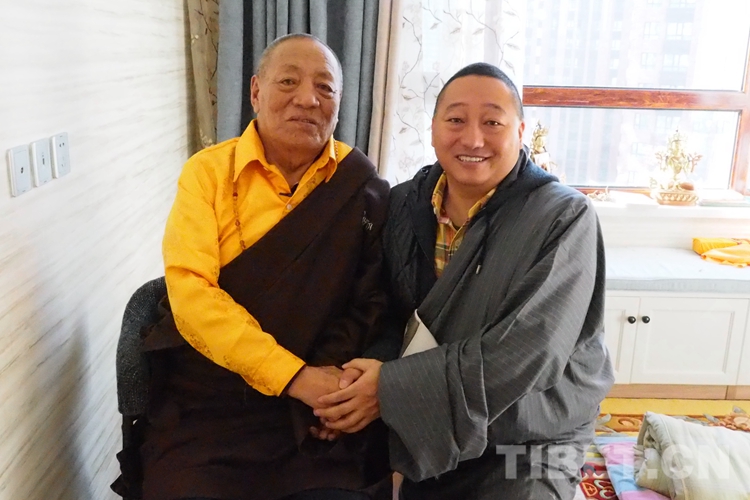 图为四朗青佩(右)与老师藏医药全科专家卡洛教授(青海藏医院原院长)合影