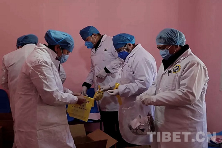 图为甘孜州配发防疫藏药,工作人员在分装药品