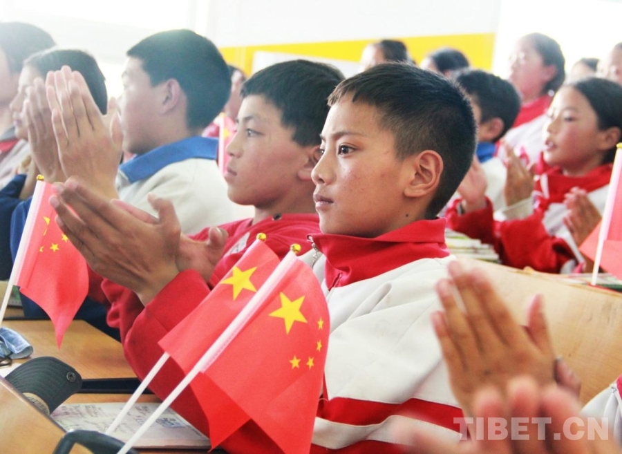 图为四川省甘孜州石渠县第二完全小学学生代表以热烈的掌声欢迎医疗专家们的到来 摄影:刘莉