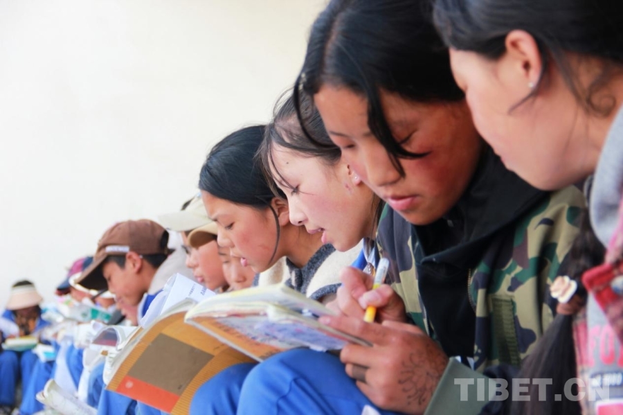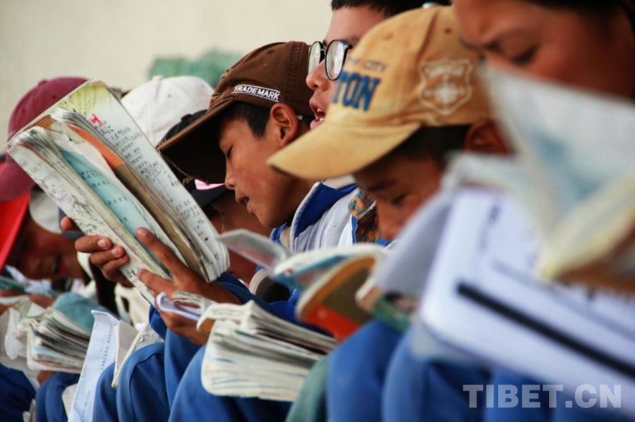 图为四川省甘孜州石渠县第二完全小学学生正在温习功课 摄影:刘莉