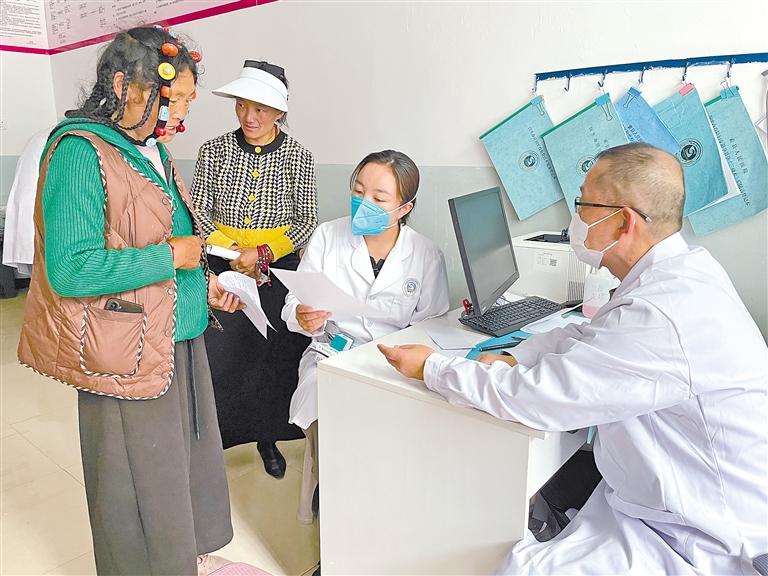 近日,由大连理工大学附属中心医院(大连市中心医院)医疗专家组成的义诊团队在那曲市索县人民医院开展了为期两天的义诊活动。图为义诊团队医生在为病人详细解释检查结果。记者 曲珍 通讯员 益西卓玛 摄