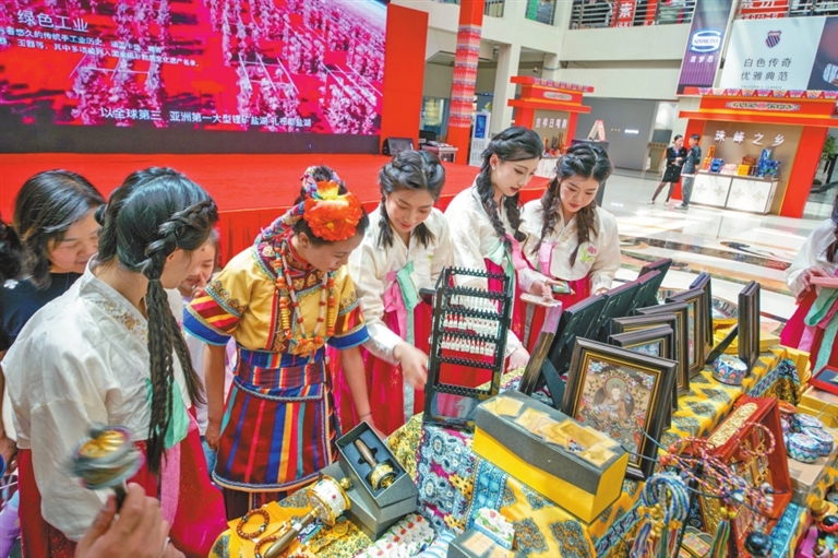 在吉林举办的“藏品入吉”展销会上,游客在选购日喀则特产。