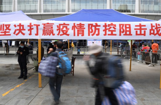 10月20日,兰州火车站,出省旅客持24小时内核酸检测证明及健康码进站乘车。(新华社记者陈斌 摄)
