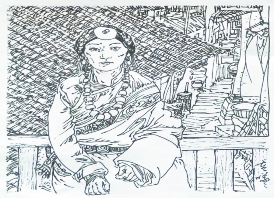 旧时康定锅庄女(四川民族学院郭重曦绘)