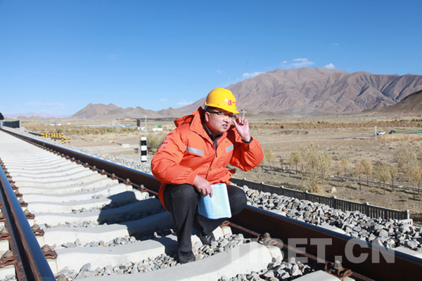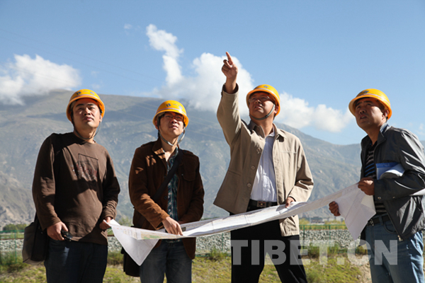 图为2013年5月23日,刘争平(右二)在拉日铁路现场勘察。