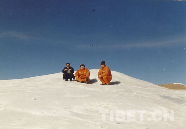 图为2004年12月20日,刘争平(中)和同事在唐古拉山。