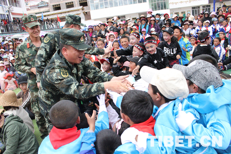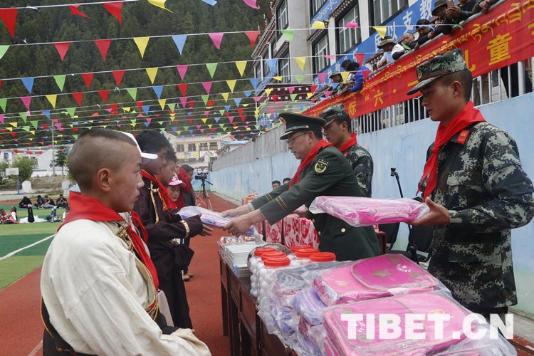 中国西藏网讯 在“六•一”儿童节来临之际,武警某部交通第三支队官兵走进西藏自治区林芝市波密县古乡武警爱民希望小学和西藏自治区昌都市芒康县嘎托镇中心小学,进行“六•一”慰问。官兵为孩子们送来节日的关爱,带去了书籍、书包、篮球等价值近5万元的文体用品。