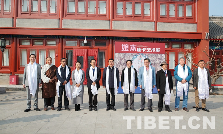 中国西藏网讯 3月1日,娘本唐卡艺术展在北京西黄寺博物馆开幕。图为开幕式现场。摄影:杨月云