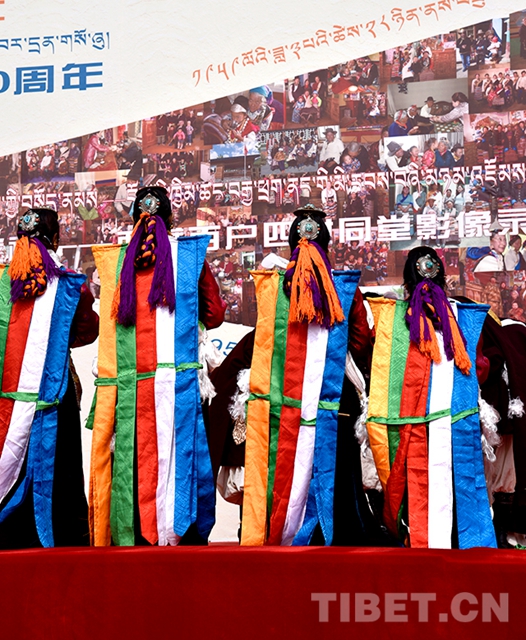 跳舞的演员们来自拉萨市墨竹工卡县普堆巴宣舞团,她们表演的是藏族最古老的一种歌舞——普堆巴宣舞,这一古老的歌舞形式已在墨竹工卡县直孔一带传承已久,2008年被列为国家级第二批非物质文化遗产名录。