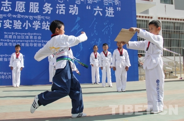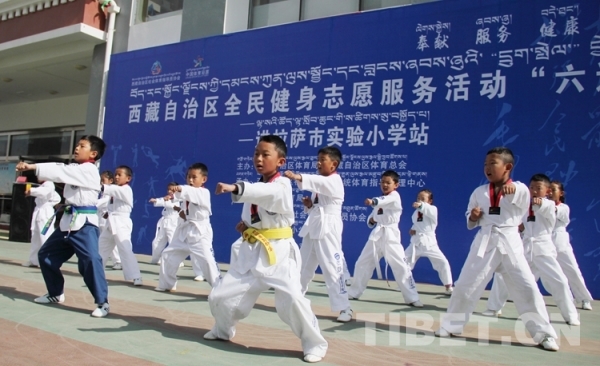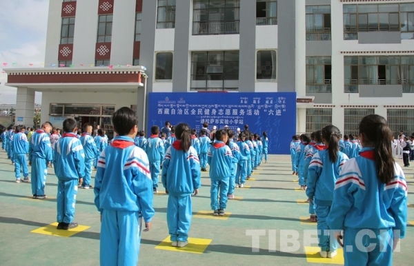中国西藏网讯 5月15日,西藏自治区全民健身志愿服务活动走进拉萨市实验小学。活动中,西藏自治区体育局向拉萨市实验小学捐赠价值10万元的体育器材。
