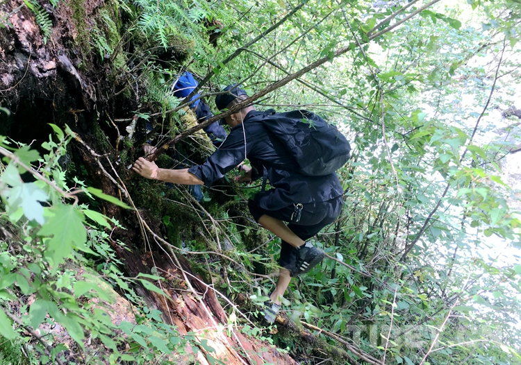 办案民警趟河水、钻丛林、爬高山,10余个小时后,最终到达海拔4000多米高的举报点,当场发现了正在盗伐林木的苏某,并将苏某传唤至森林公安局接受调查。