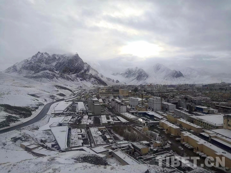 图为清晨迎来小雪天气的阿里地区狮泉河镇