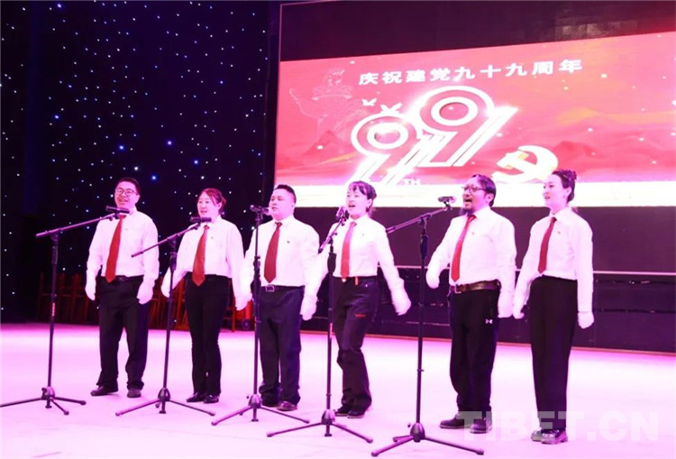 《我和我的祖国》《团结就是力量》《唱支山歌给党听》、《北京的金山上》《歌唱祖国》等红色歌曲经典曲目唱出了全体党员对祖国的无限热爱,对党和人民的无限忠诚。(中国西藏网 记者/赵二召 图由那曲广播电视台提供)