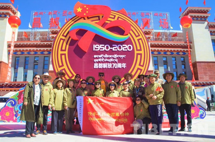中国西藏网讯 为纪念昌都解放70周年,10月9日,西藏自治区昌都市在综合体育场举行庆祝大会。大会现场邀请到了一群“特殊客人”——曾经为解放西藏做出巨大贡献的十八军老前辈代表以及十八军后代代表。他们应邀来到这里,与昌都各族人民共同见证70年后昌都的崭新面貌。