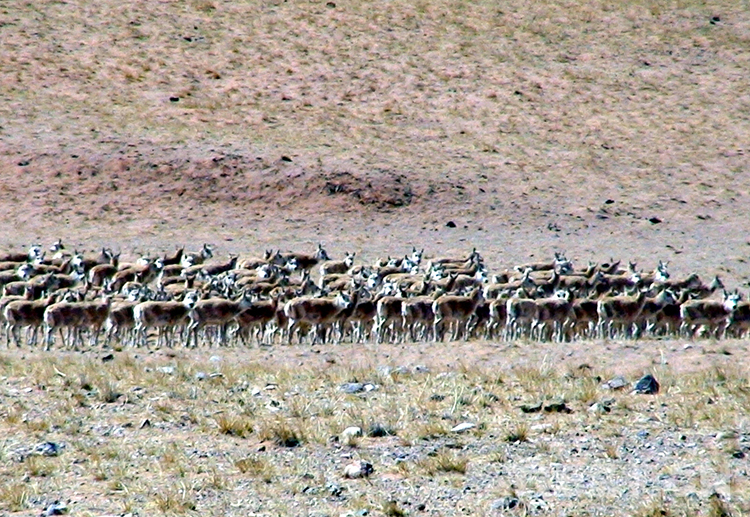 这是羌塘国家级自然保护区核心地带正在迁徙的雌性藏羚羊(唐召明2006年摄)
