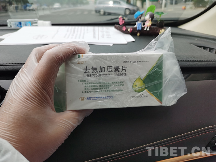 在山南市商务局协助下,两名快递员给取货点打电话,告知其提前准备好药品。然后驱车30分钟完成无接触取货后,就马不停蹄地前往了目的地。