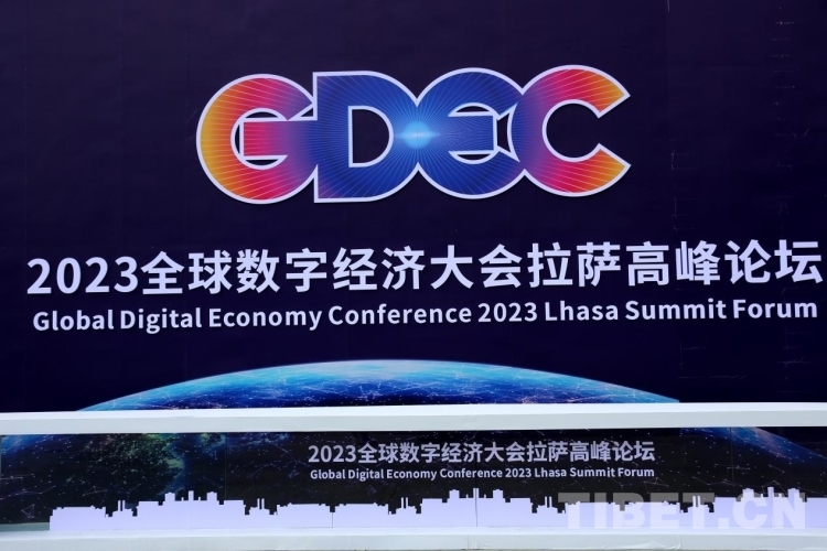 图为2023全球数字经济大会拉萨高峰论坛展板 摄影:王佳豪