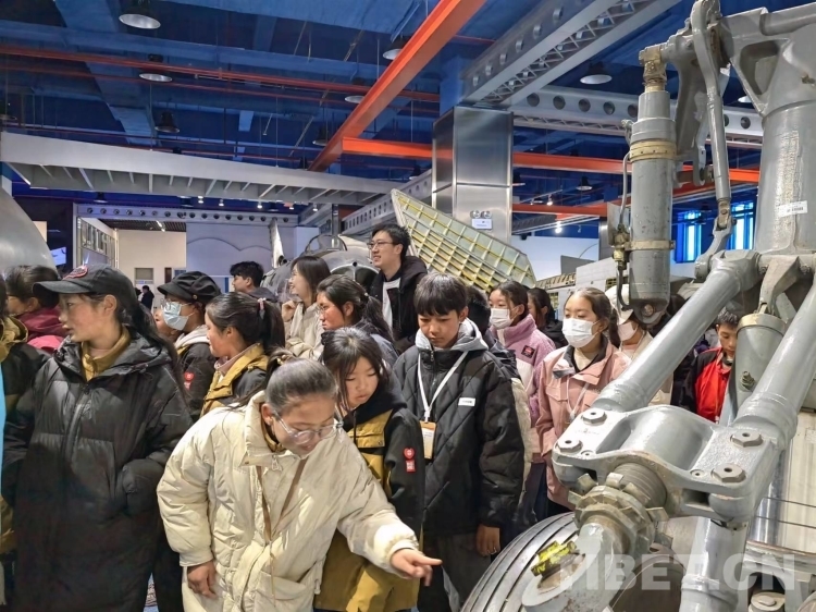 图为学生在航空航天文物精品馆驻足观赏