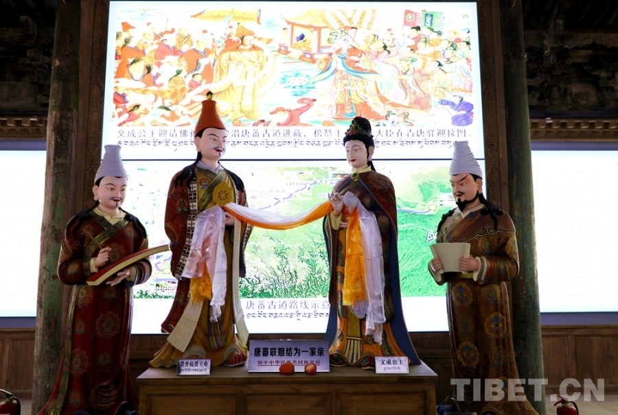 图为宏觉寺铸牢中华民族共同体意识体验馆内“唐蕃联姻”塑像 摄影:王茜