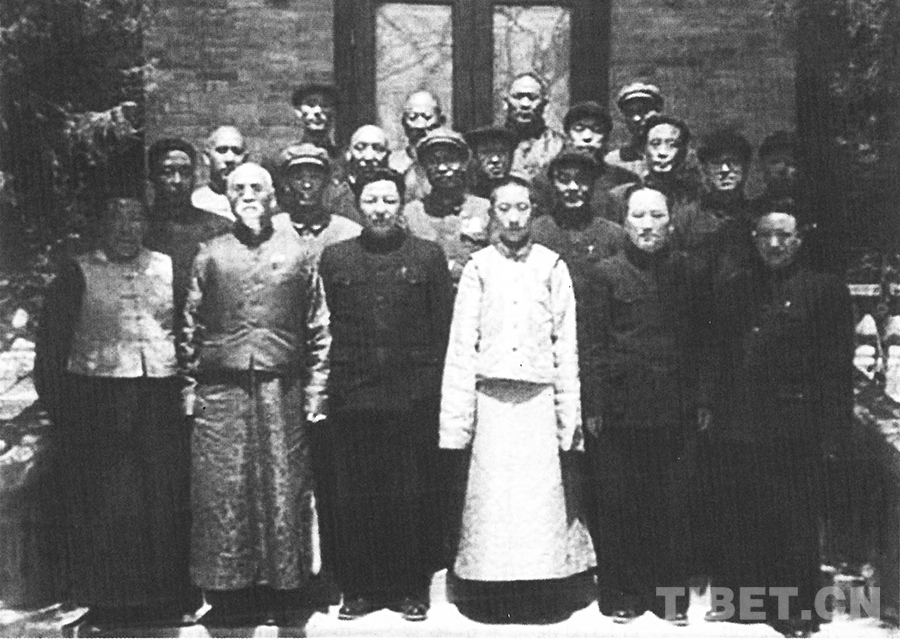 图为习仲勋代表西北军政委员会前来送行,期间和十世班禅、喜饶嘉措,青海省委、省政府领导及各界人士一起合影 程颐工供图