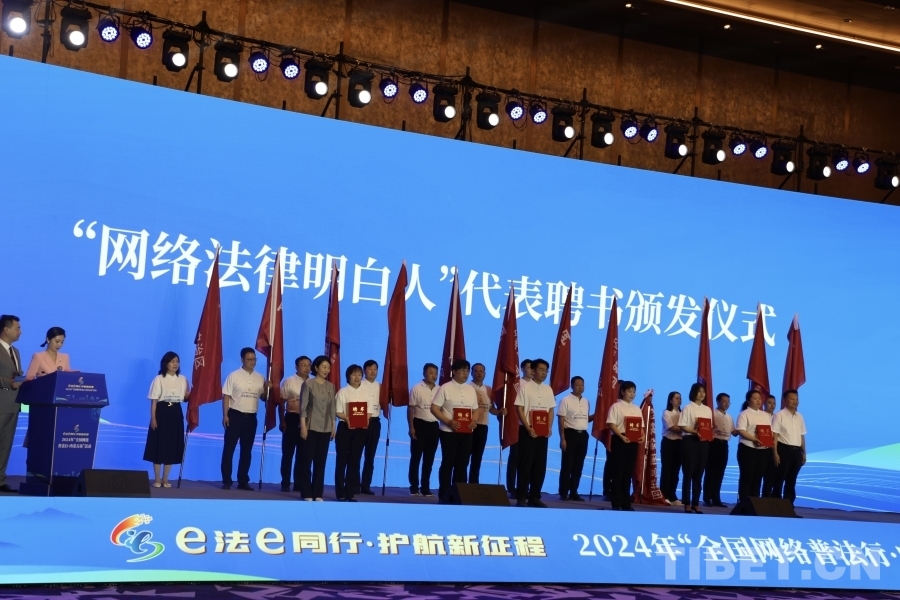 图为向“网络法律明白人”代表颁发聘书 摄影:龙真多吉