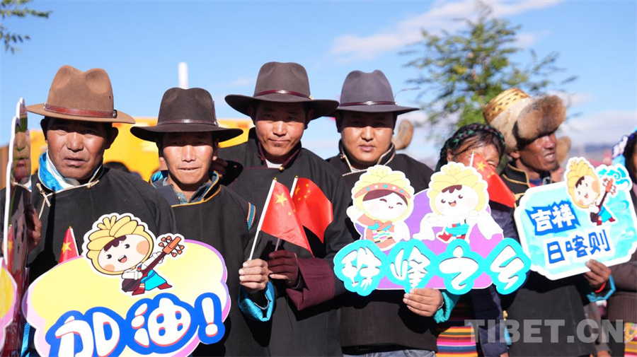 图为在日喀则赛段起点为运动员加油的观众 摄影:德吉卓玛