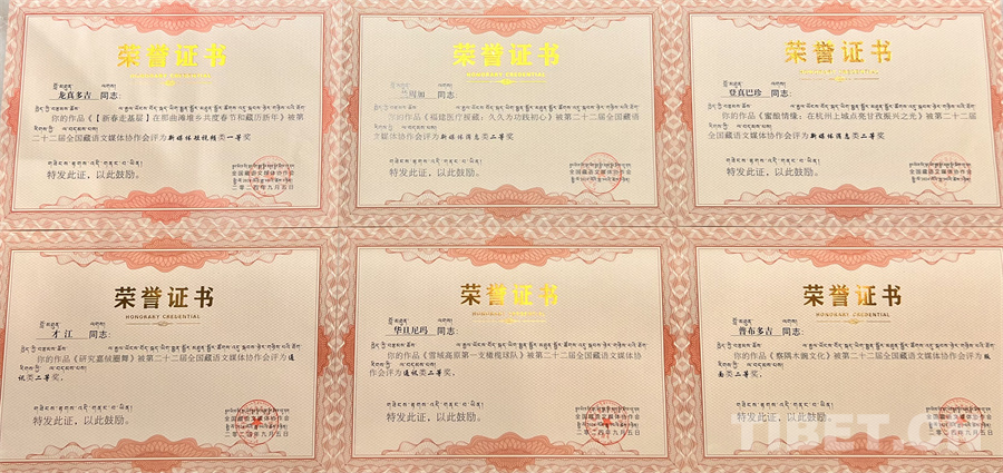 图为中国西藏网获奖作品证书 摄影:龙真多吉