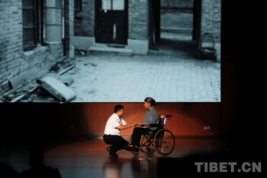 图为孔繁森同志数字形象制作启动仪式上,孔繁森精神教学基地工作人员再现孔繁森同志第二次赴西藏工作前与年迈的母亲告别的场景 摄影:刘莉