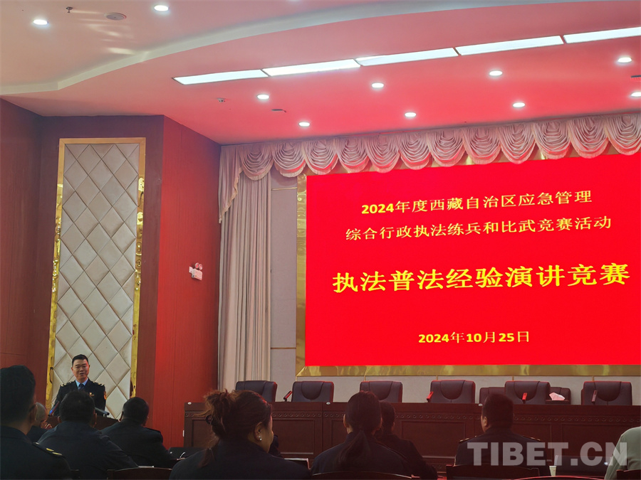 中国西藏网讯 10月25日,西藏自治区应急管理厅开展2024年度应急管理综合行政执法练兵和比武竞赛活动。此次练兵和比武竞赛活动共有来自七地(市)选派的7支队伍共35名执法干部参加。竞赛活动设置了执法理论知识考试、执法普法经验演讲、模拟现场安全生产执法检查、安全生产执法案卷评查等环节,重点考核各级执法人员法律法规知识水平、规范履行执法程序能力、准确发现重大事故隐患、查处安全生产违法行为能力。各代表队参赛选手发挥各自优势、密切配合,全面展现了自治区应急管理执法队伍铁军风采。