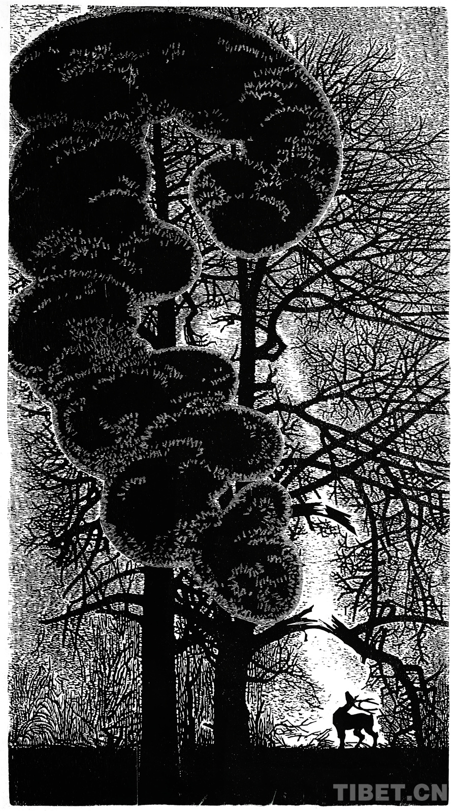 图为罗伦张作品《长太息》(木版画 2005年)