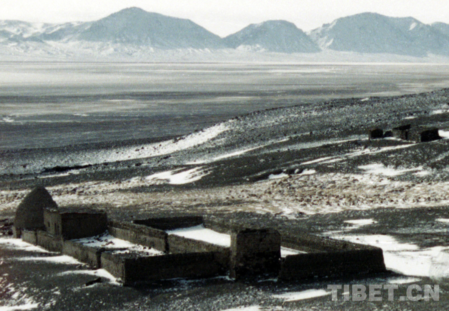 图为双湖办事处前身的申扎县加林工作组遗址,位于加林山下的俄东沟(唐召明2001年摄)