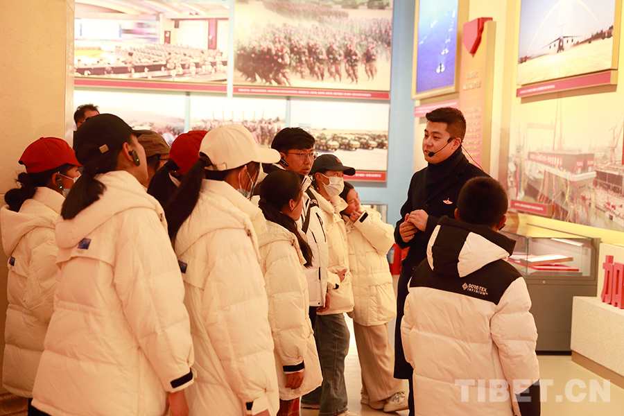 图为2月15日,来自西藏阿里地区边境县的31名师生在中国人民革命军事博物馆聆听讲解 摄影:陈卫国