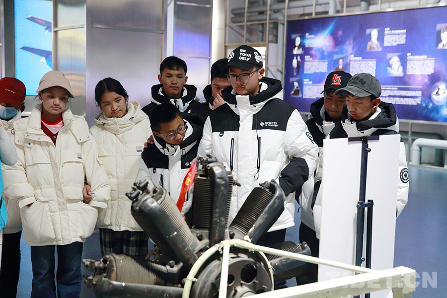 图为2月13日,来自西藏阿里地区边境县的31名师生在北京航空航天博物馆参观学习 摄影:陈卫国