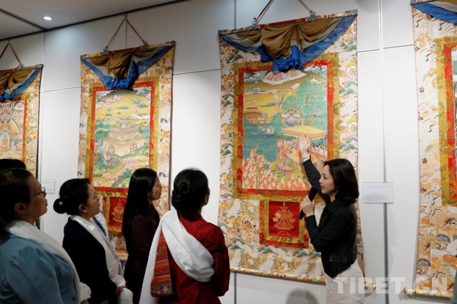 图为“一眼千年——中国唐卡绘画中的睦邻美善”展览现场 康卓供图